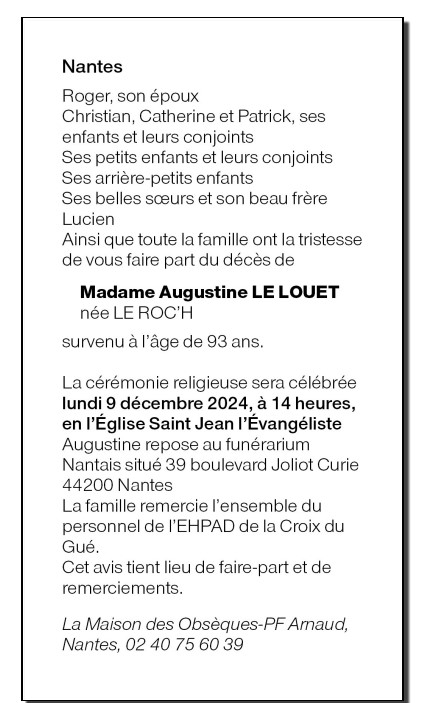 de Madame Augustine LE LOUET née LE ROC'H