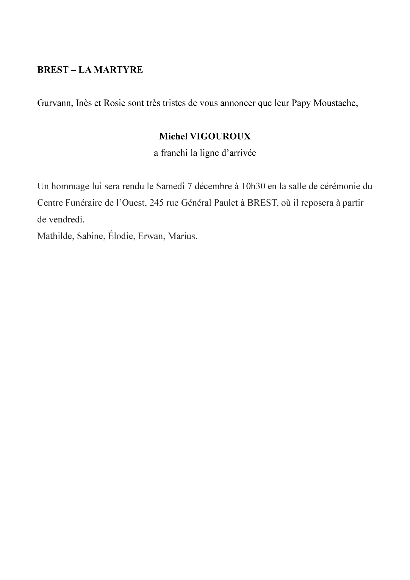 Cet espace « condoléances » est dédié à la mémoire de Monsieur Michel VIGOUROUX.