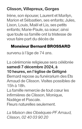 Cet espace « condoléances » est dédié à la mémoire de Monsieur Bernard BROSSARD.