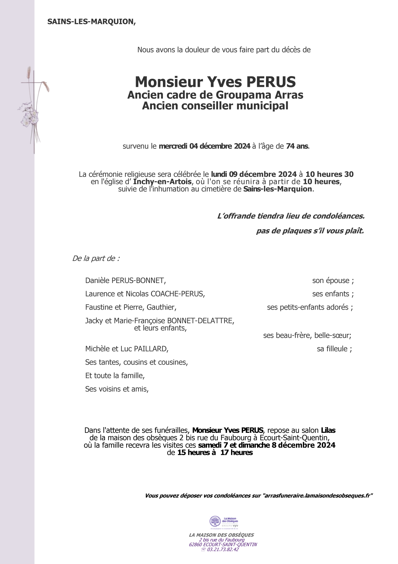 Cet espace « condoléances » est dédié à la mémoire de Monsieur Yves PERUS.