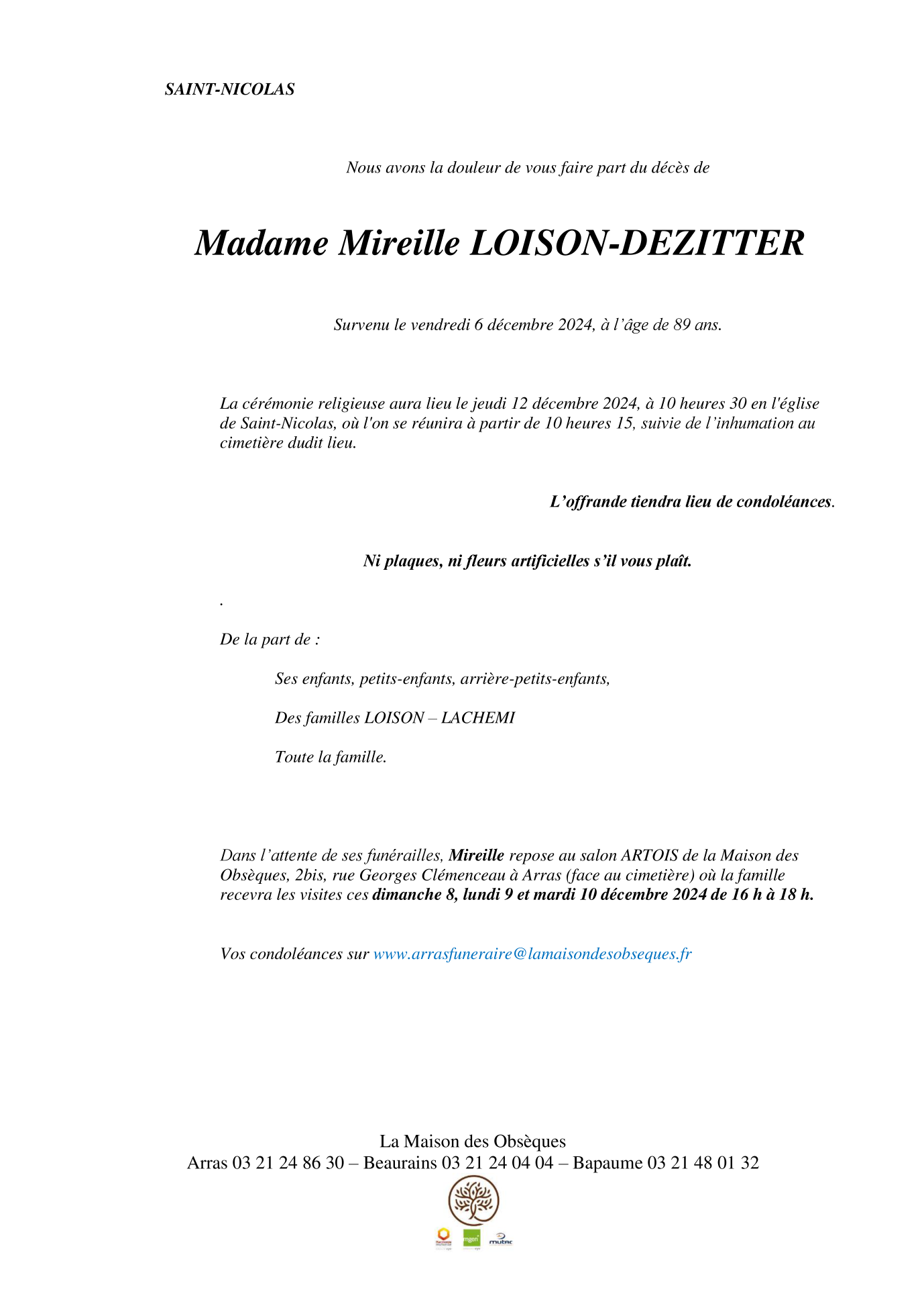 de Madame Mireille GUERARD née DEZITTER