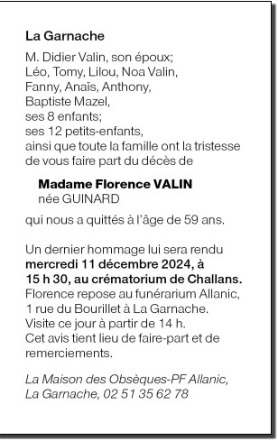 de Madame Florence VALIN née GUINARD