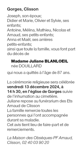 de Madame Juliane BLANLOEIL née DOUILLARD
