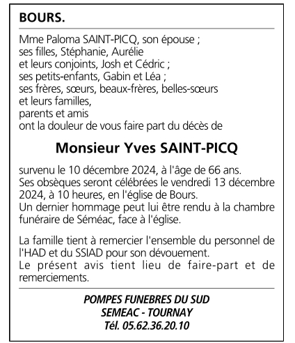 Cet espace « condoléances » est dédié à la mémoire de Monsieur Yves SAINT-PICQ.