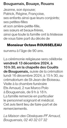 Cet espace « condoléances » est dédié à la mémoire de Monsieur Octave ROUSSELEAU.