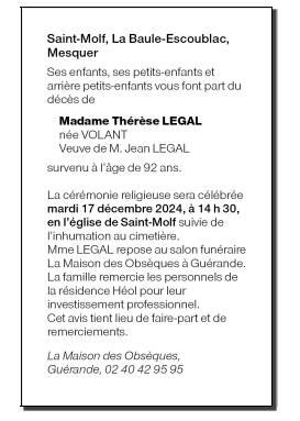 de Madame Thérèse LEGAL née VOLANT