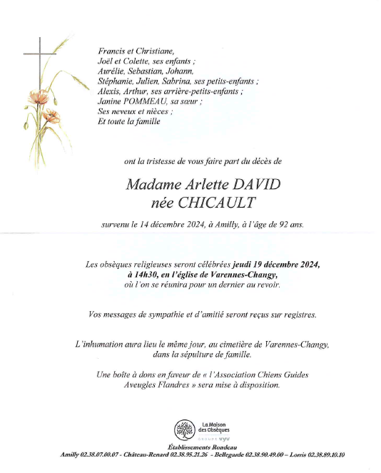 de Madame Arlette DAVID née CHICAULT