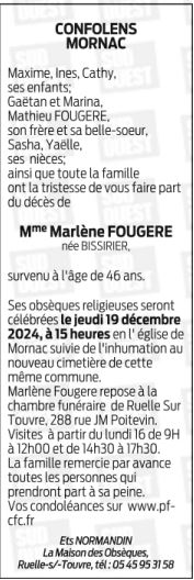de Madame MARLENE FOUGERE née BISSIRIER