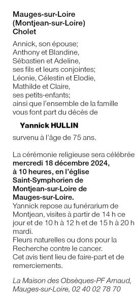 Cet espace « condoléances » est dédié à la mémoire de Monsieur Yannick HULLIN.