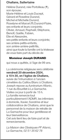 Cet espace « condoléances » est dédié à la mémoire de Monsieur Joseph DURAND.