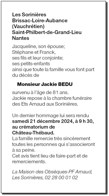 de Monsieur Jackie BEDU