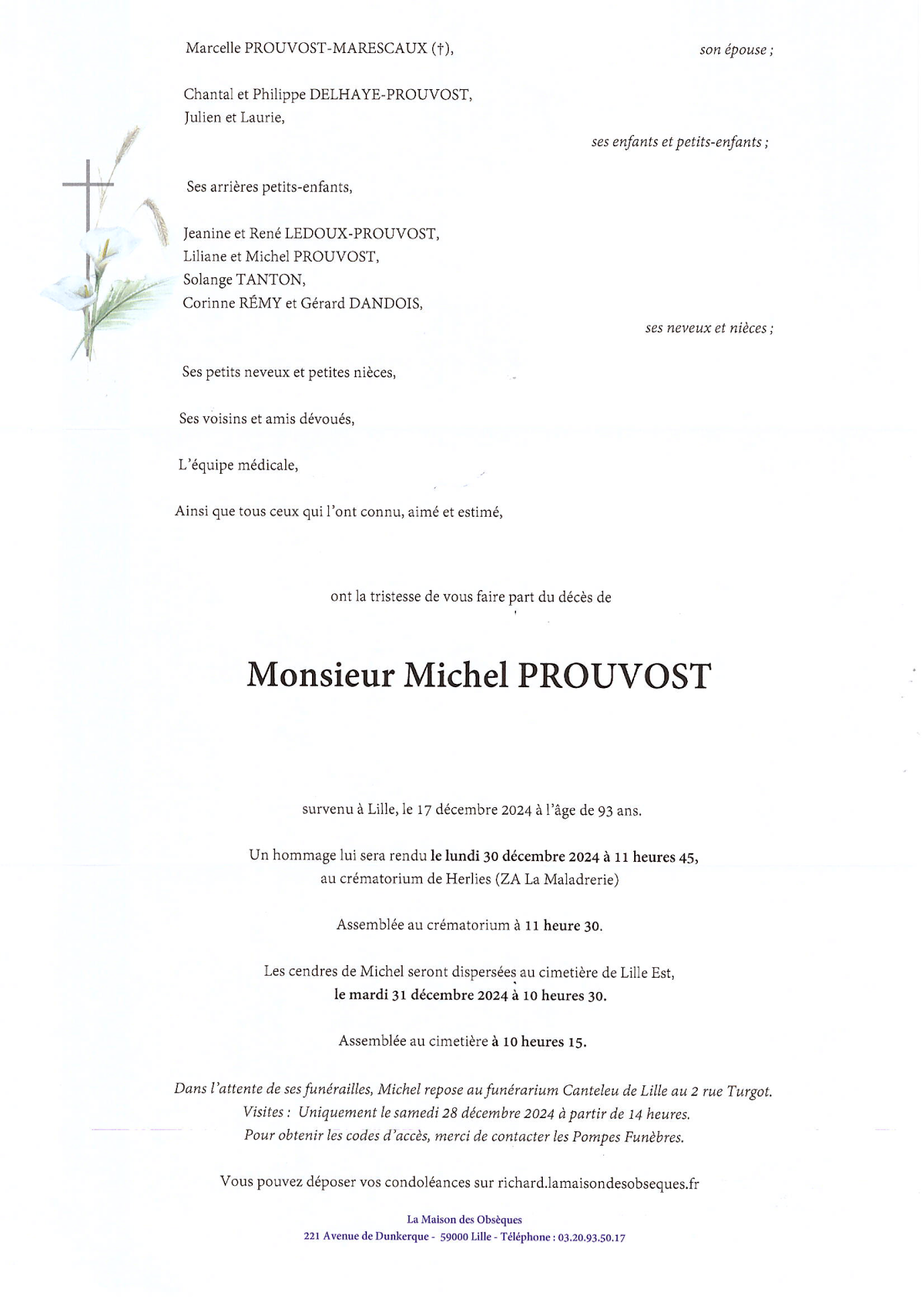 Cet espace « condoléances » est dédié à la mémoire de Monsieur Michel PROUVOST.