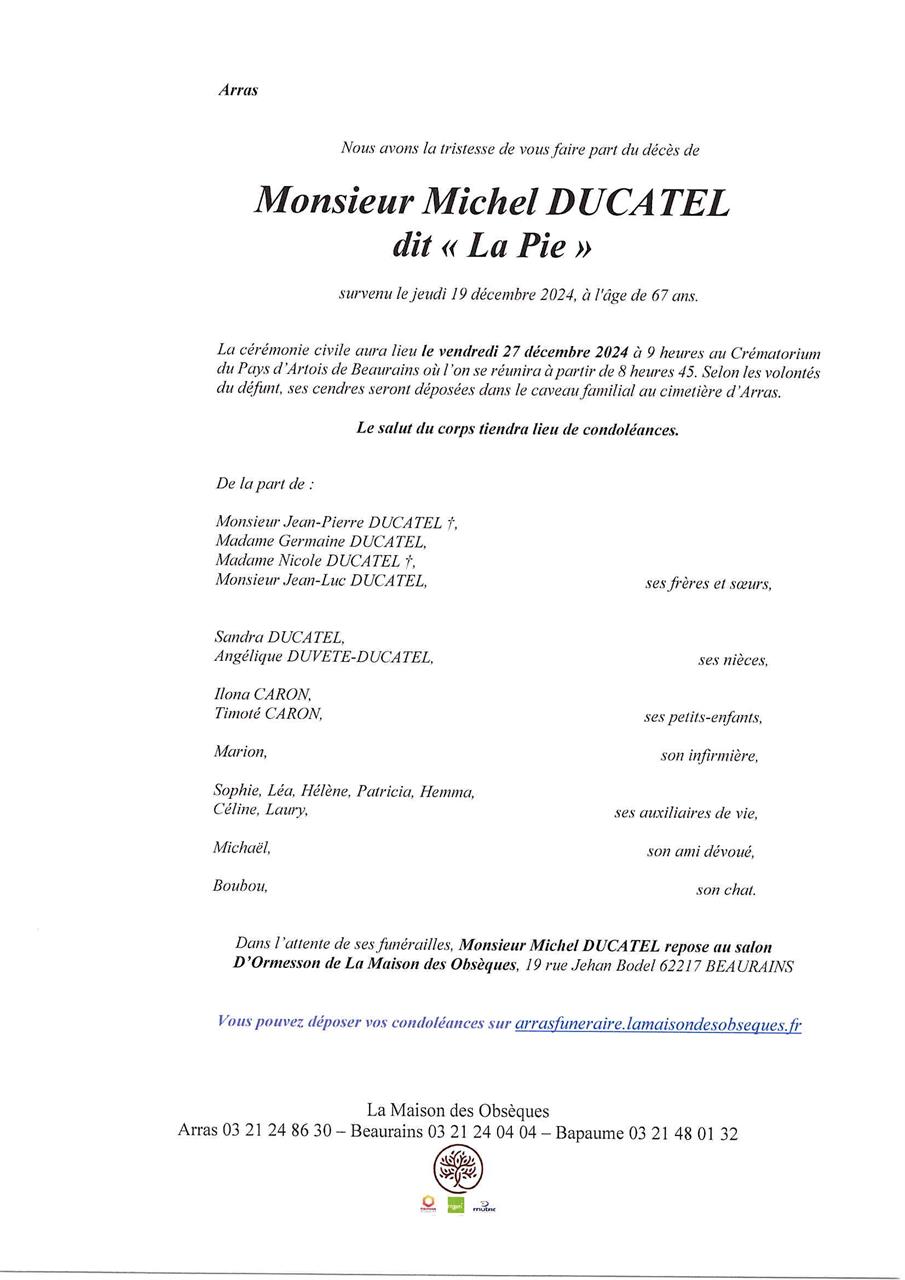 de Monsieur Michel DUCATEL