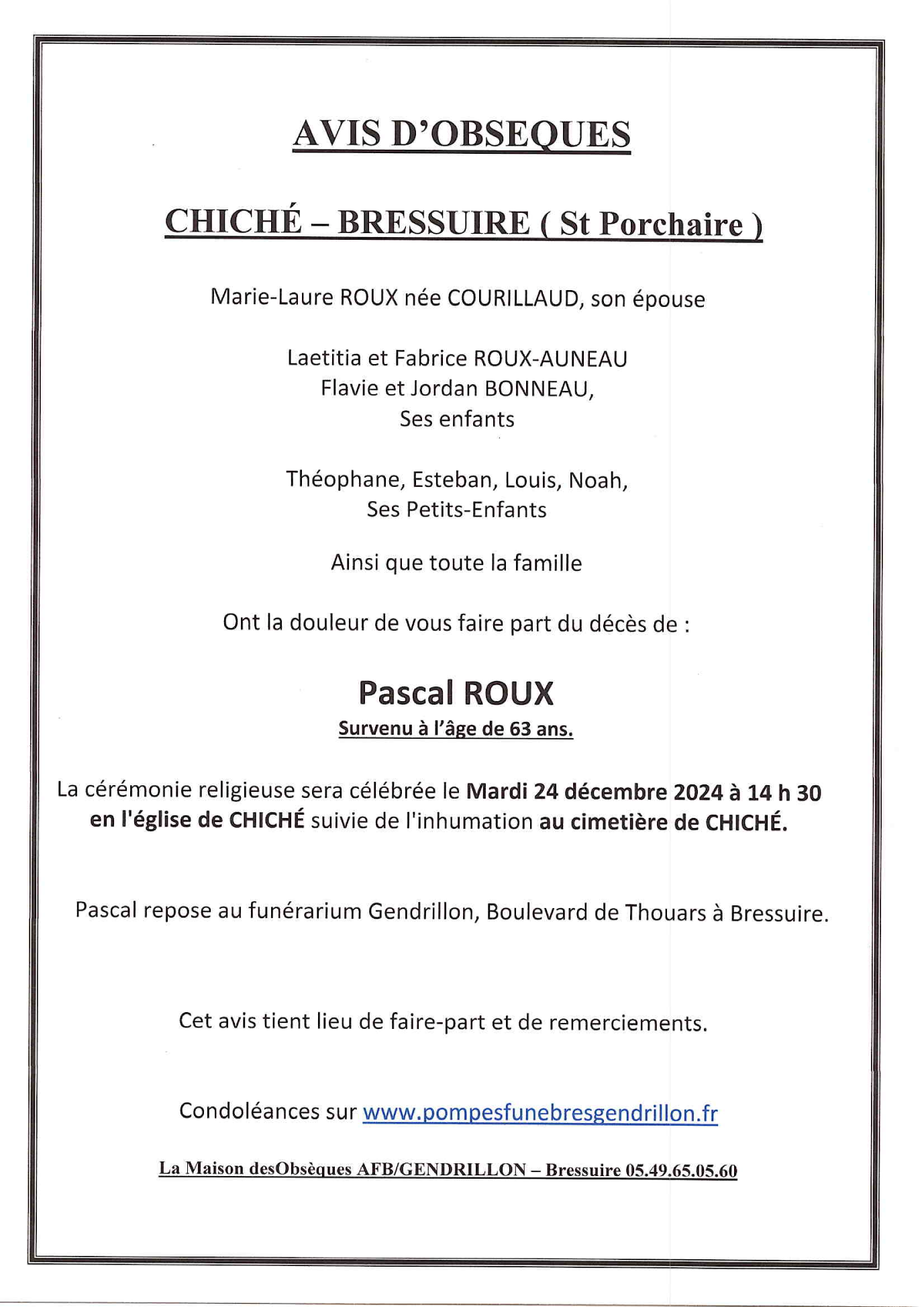 Cet espace « condoléances » est dédié à la mémoire de Monsieur Pascal ROUX.