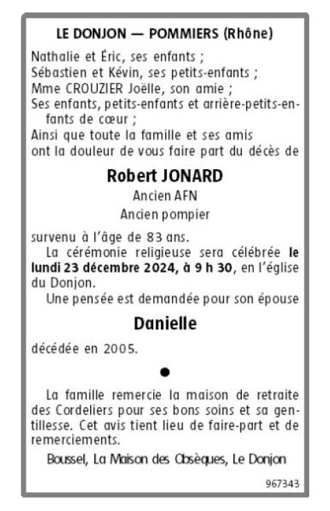 Décédé à Le Donjon (03130) le jeudi 19 décembre 2024