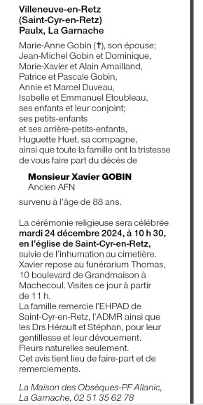 Cet espace « condoléances » est dédié à la mémoire de Monsieur Xavier GOBIN.