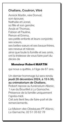 Cet espace « condoléances » est dédié à la mémoire de Monsieur Robert MARTIN.