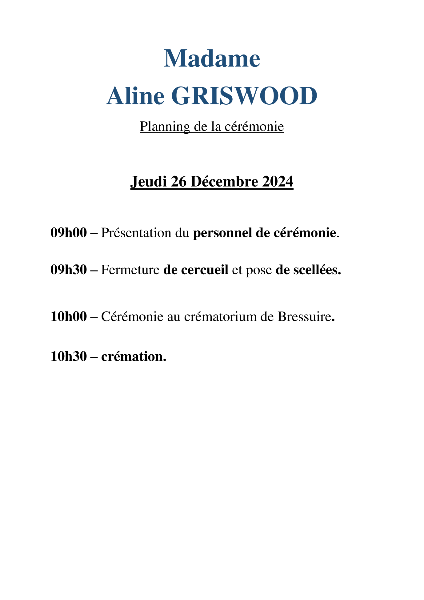 N’hésitez pas à renseigner cette page à vos connaissances. Ceux qui sont loin ou qui n’ont pas la possibilité de se joindre à la cérémonie trouveront ici une façon simple de montrer leurs sentiments à la famille dans ce moment difficile.