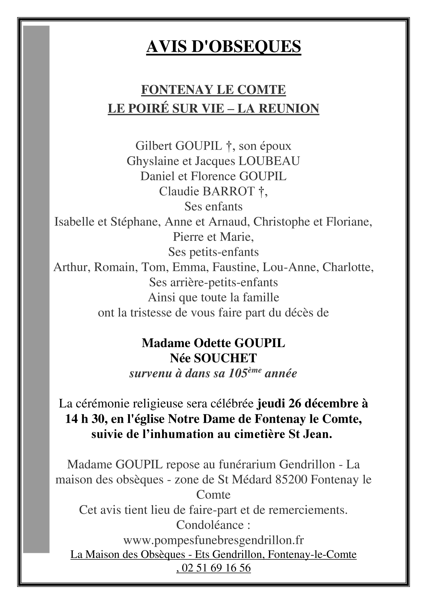 de Madame Odette GOUPIL née SOUCHET