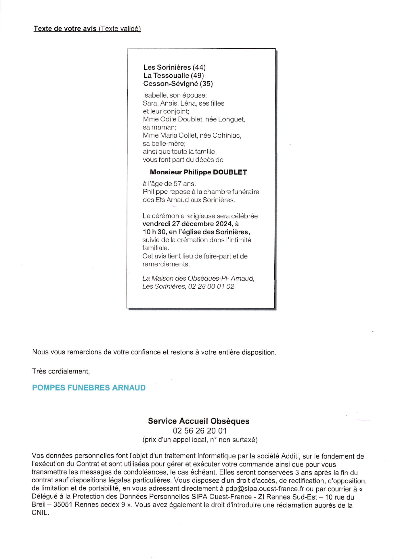 Cet espace « condoléances » est dédié à la mémoire de Monsieur Philippe DOUBLET.
