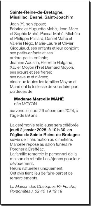 de Madame MARCELLE MAHE née MOYON