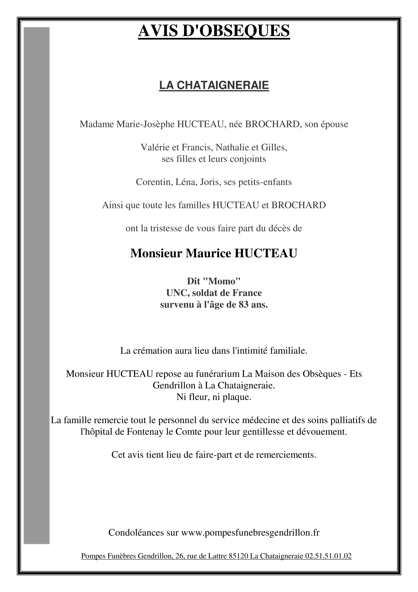 de Monsieur Maurice HUCTEAU