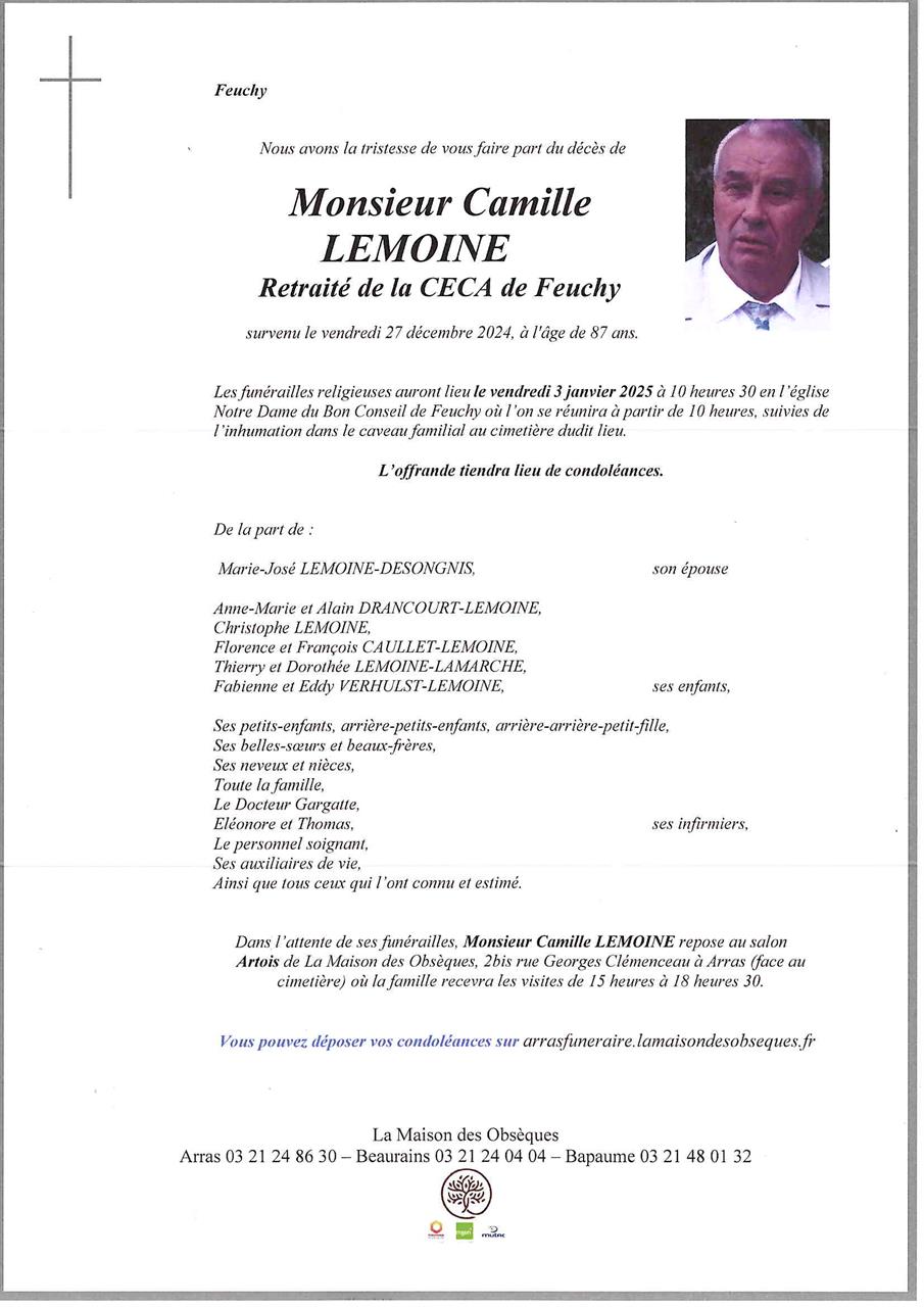 Cet espace « condoléances » est dédié à la mémoire de Monsieur Camille LEMOINE.