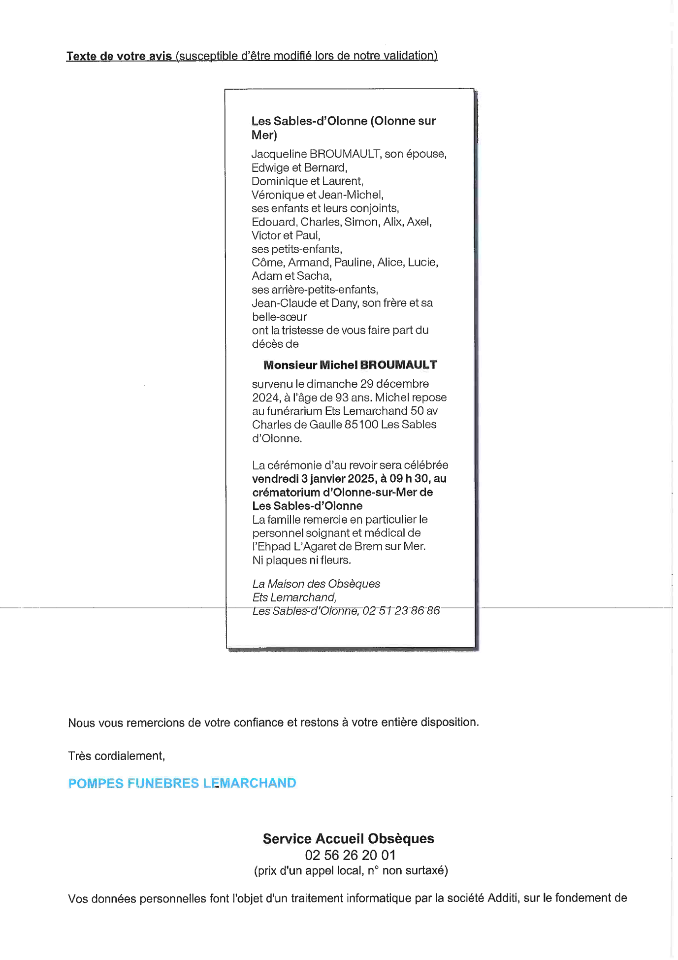 Cet espace « condoléances » est dédié à la mémoire de Monsieur Michel BROUMAULT.