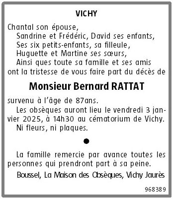 Cet espace « condoléances » est dédié à la mémoire de Monsieur Bernard RATTAT.