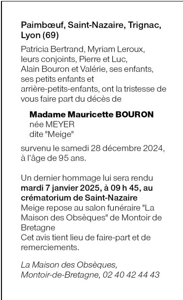 Décédée à Paimboeuf (44560) le samedi 28 décembre 2024