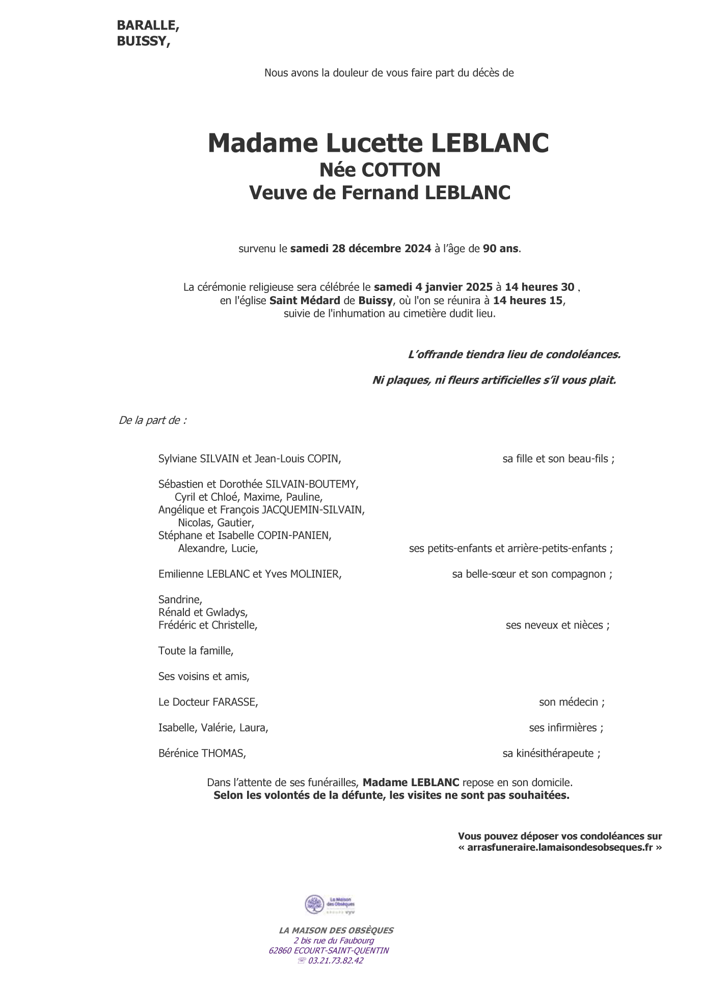 de Madame Lucette LEBLANC née COTTON