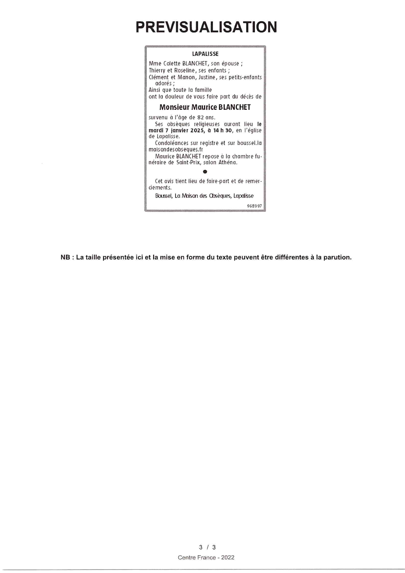 Cet espace « condoléances » est dédié à la mémoire de Monsieur Maurice BLANCHET.