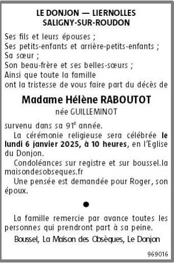 de Madame Hélène RABOUTOT née GUILLEMINOT