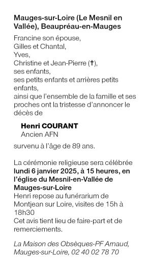 Cet espace « condoléances » est dédié à la mémoire de Monsieur Henri COURANT.