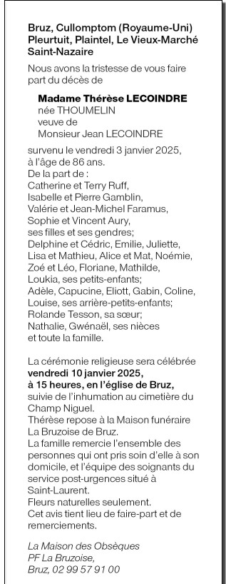 de Madame Thérèse LECOINDRE née THOUMELIN