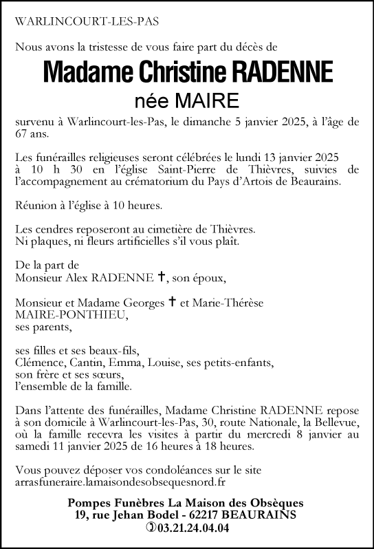 de Madame Christrine RADENNE née MAIRE