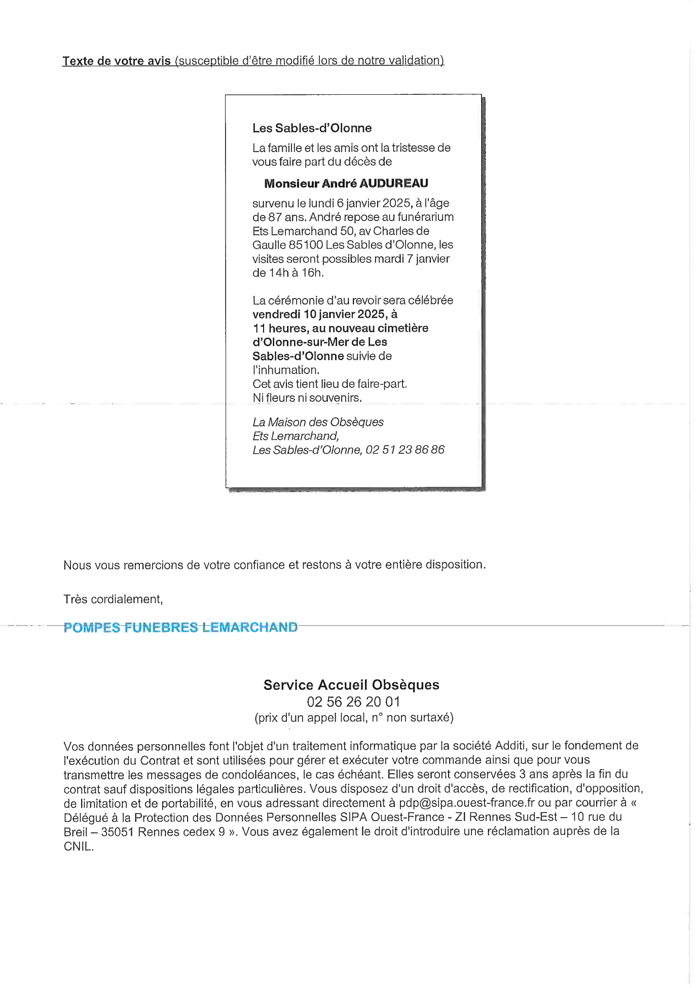 Cet espace « condoléances » est dédié à la mémoire de Monsieur André AUDUREAU.