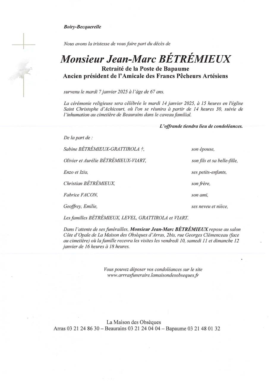 Monsieur Jean-Marc BÉTRÉMIEUX 1957 - 2025