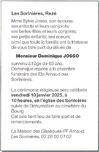 Cet espace « condoléances » est dédié à la mémoire de Monsieur Dominique JOSSO.
