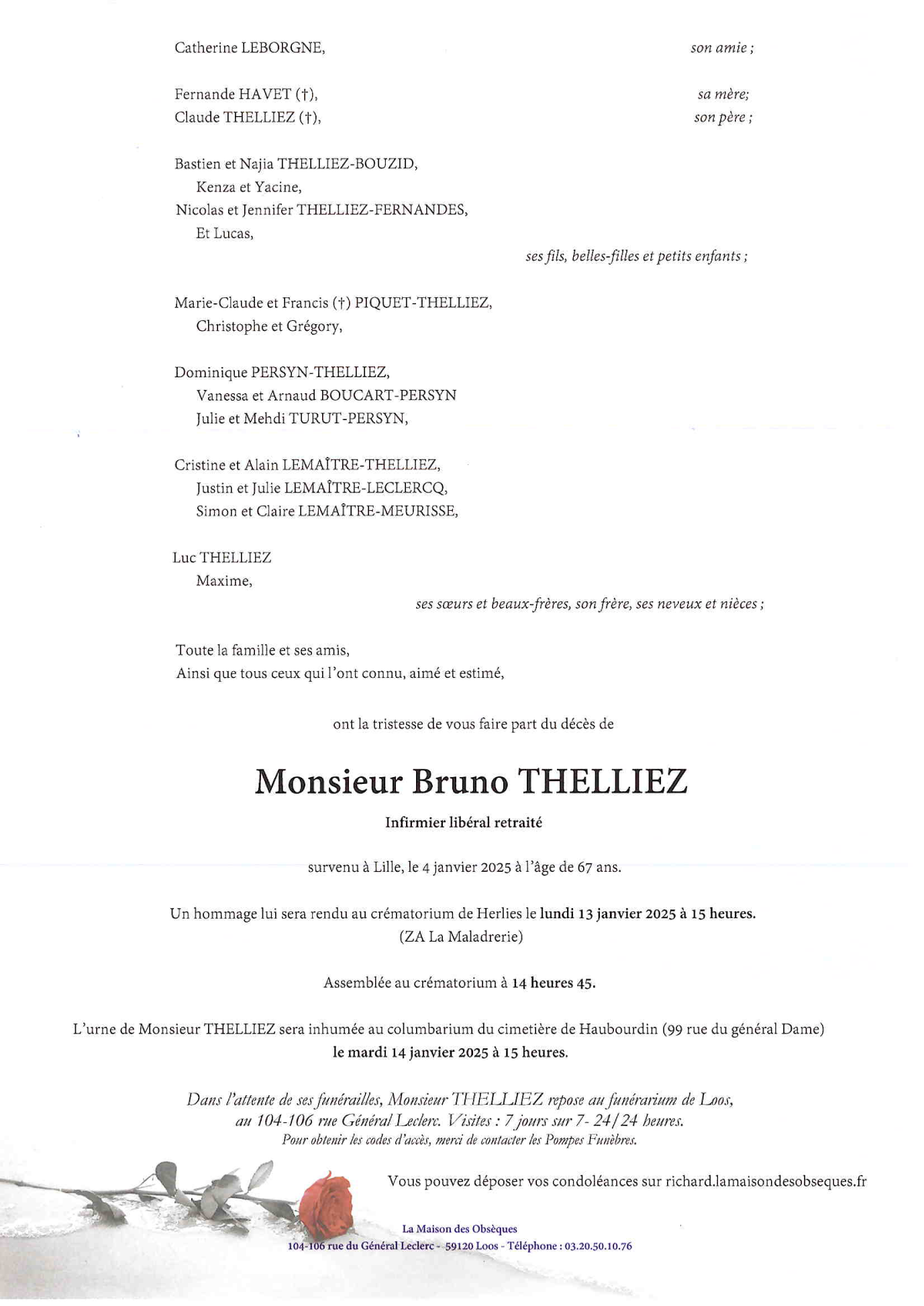 Décédé à Lille (59000) le samedi 4 janvier 2025