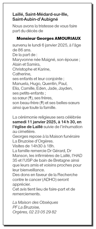 Décédé à Bain-de-Bretagne (35470) le lundi 6 janvier 2025