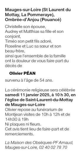 Décédé à Angers (49000) le mardi 7 janvier 2025