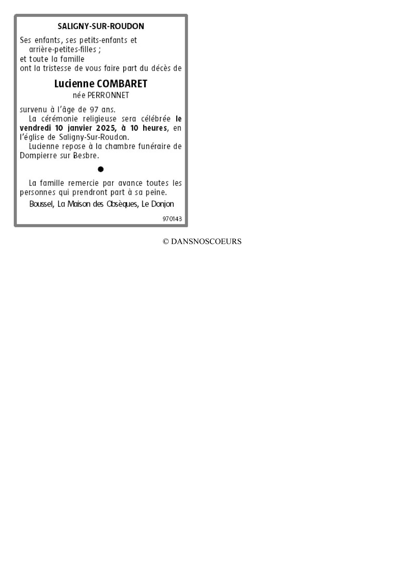 de Madame Lucienne COMBARET née PERRONNET