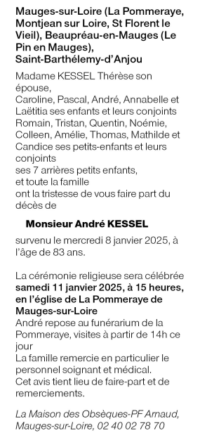Cet espace « condoléances » est dédié à la mémoire de Monsieur André KESSEL.