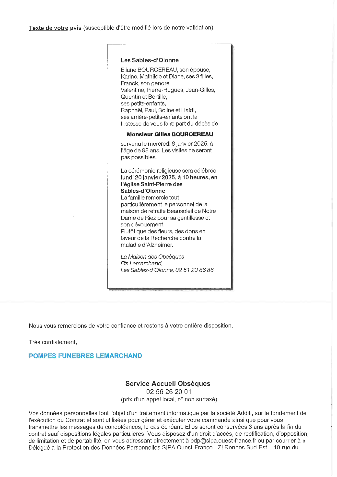 Cet espace « condoléances » est dédié à la mémoire de Monsieur Gilles BOURCEREAU.