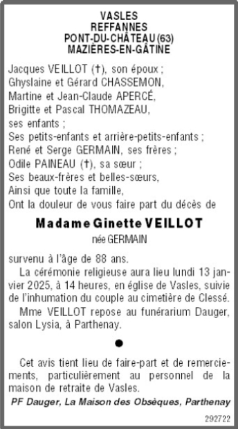 de Madame Ginette VEILLOT née GERMAIN