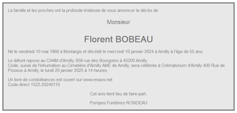 Cet espace « condoléances » est dédié à la mémoire de Monsieur Florent BOBEAU.