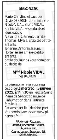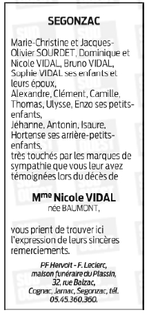 de Madame Nicole VIDAL née BAUMONT
