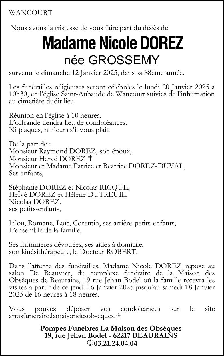 de Madame Nicole DOREZ née GROSSEMY