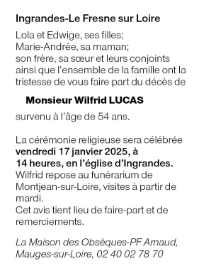 Cet espace « condoléances » est dédié à la mémoire de Monsieur Wilfrid LUCAS.